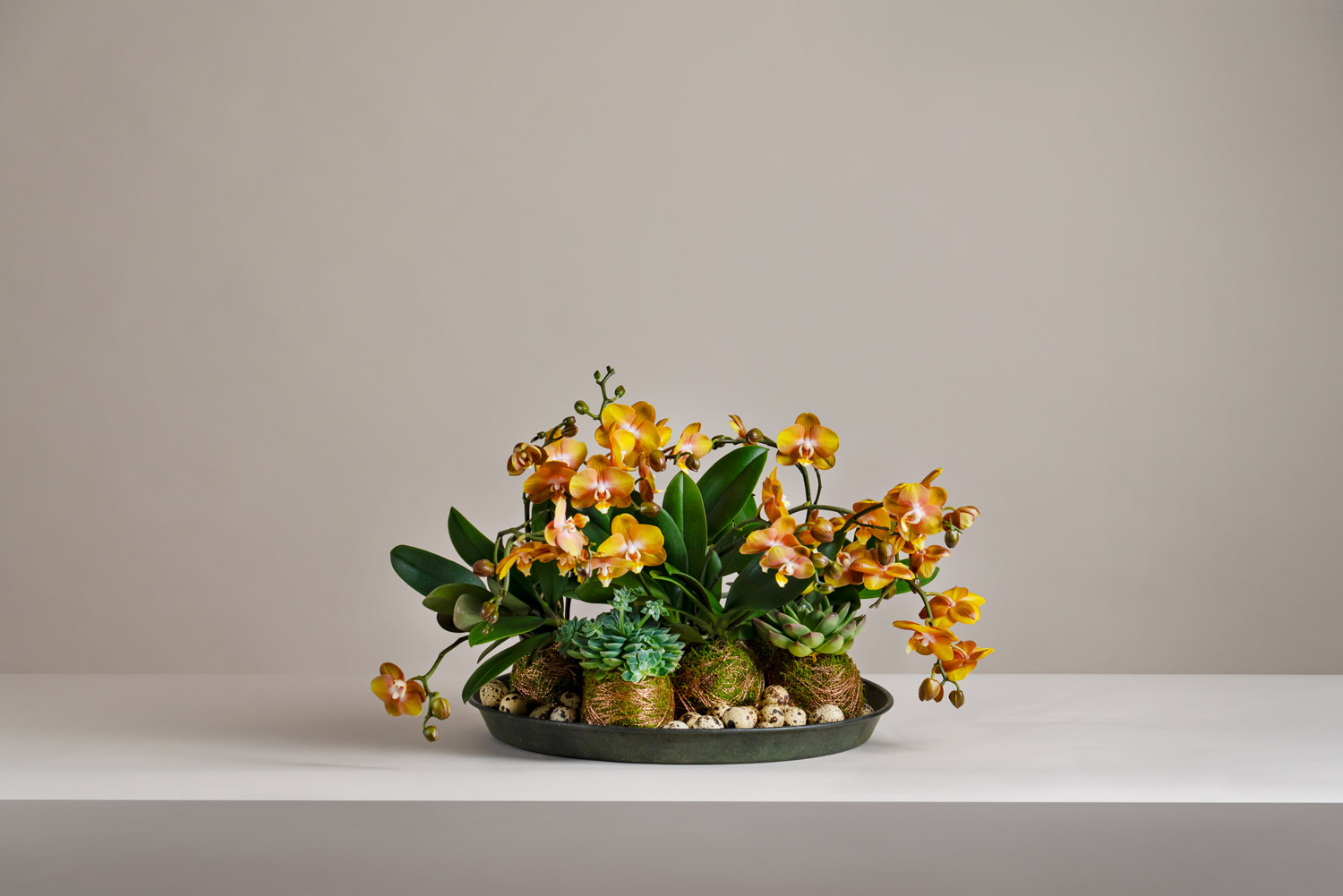 – Förutom att det är fint så suger mossa både åt sig och avger fukt, vilket gör att blommorna inte blir övervattnade. Orkidén är också en sådan blomma som fått lite dåligt rykte, men som är fantastisk och blommar länge.