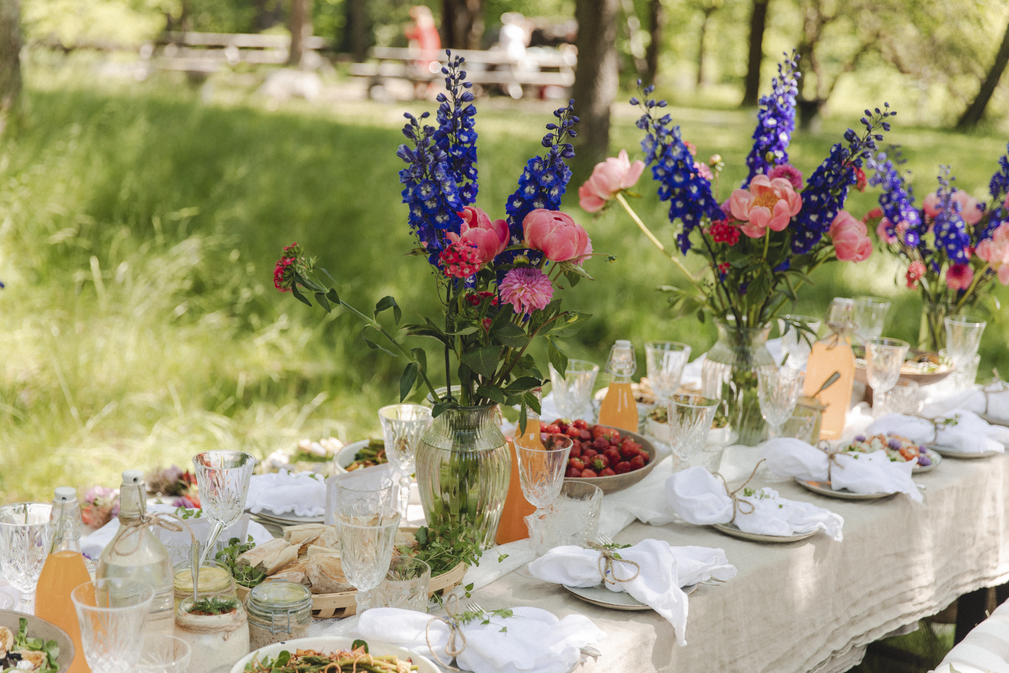Vill du lägga lite extra tid på midsommardukningen i år? Varför inte flytta ut midsommarbordet på en vacker äng omringad av grönska och blommor. Utomhus finns massor av möjligheter att skapa en mysig tillställning och bjuda gästerna på det lilla extra.